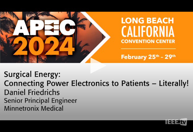 We’re proud to share our very own Dan Friedrichs’ recent presentation at the APEC Plenary Session. The keynote presentation on “Surgical Energy: Connecting Power Electronics to Patients – Literally!” educated the audience on how power electronics systems are used in the medical devices industry to improve lives. Dan specifically highlights how applications including RF and electroporation/PFA are used today, and previewed a future where the integration of advancements in energy delivery systems, operational workflows, robotics, and imaging will completely change the nature of patient therapy.